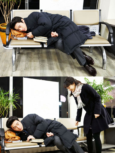 두 배우 모두 휴대용 난로 앞에서 몸을 녹이는 것은 기본. 한예슬은 두꺼운 패딩 점퍼와 담요 등으로 추운 현장을 이겨내고, 고수는 핫 팩을 직접 양 볼에 대고 얼어버린 얼굴을 녹인다.