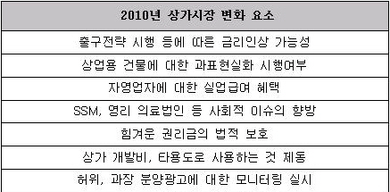 <2010년 상가시장 변화 요소/ 상가뉴스레이다> |