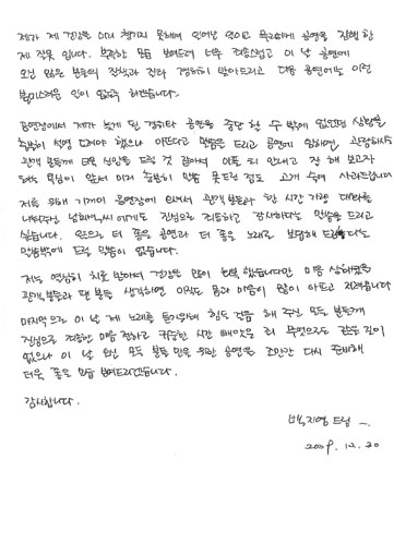 또한 "공연 당일 저녁 8시 공연을 앞두고 오전부터 스스로 일어설 수 없을 정도로 건강 상태가 좋지 않았지만 이미 공연장을 향하고 있을 많은 관객 분들을 생각하며 이를 악 물고 공연을 진행했다. 관객 분들의 박수소리에 힘내서 아픈 티 내지 않고 마지막까지 공연을 마치고 싶었으나 아무리 힘을 내 봐도 목소리가 나오지 않아 어쩔 수 없이 무대를 내려오게 되었다"고 안타까운 당시의 심경을 전했다.