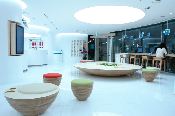 은행 공간은 직원이 업무를 하는 사무공간으로서의 기능과 고객에게 편의를 제공하는 서비스 공간으로서의 기능을 조화시켜야 하는 난제를 안고 있다. 그래서 기존의 은행들은 창구를 일자형으로 배치하는 방식에서 큰 변화를 주지 못했다.