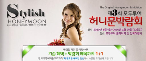 허니문 박람회 이용 시 가장 큰 이점은 기존 허니문 상품이 가지고 있는 특전에 허니문 박람회 전용 혜택을 더해 적용 받을 수 있다는 것이다. 즉 조기예약, 신부 반값, 신부 할인 상품을 이번 허니문 박람회시기에 구매하면 10만원 추가 할인이 가능해 최대 40만원까지 할인 받을 수 있게 된다.