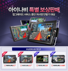 한편, 보상판매를 원하는 고객은 아이나비 홈페이지(www.inavi.com)를 통해 신청 가능하며, 아이나비 인증고객은 주문결재와 제품(메모리 포함) 반납 절차를 거친 후 신청한 제품을 받을 수 있다.