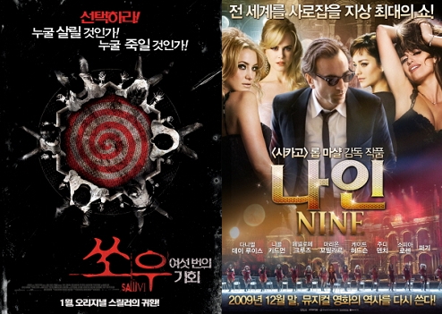 [프라임경제] 겨울방학과 새해 준비로 들뜬 극장가의 많은 영화들이 관객들 기다리고 있다. 취향대로 골라볼 수 있는 1월 극장가, 스릴러 '쏘우-여섯 번의 기회', 뮤지컬 '나인', 드라마 '웨딩드레스', 애니메이션 '공주와 개구리' 등 풍성한 장르 영화들이 개봉을 앞두고 있다.