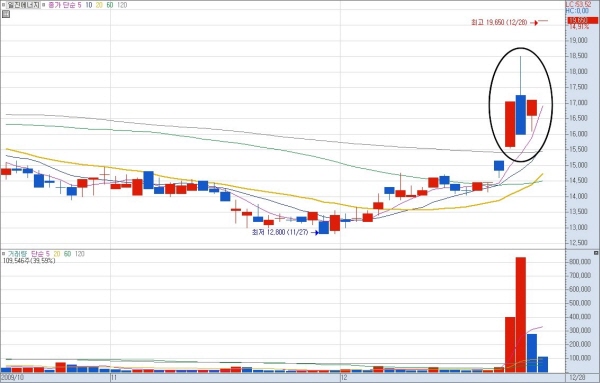 이 종목은 원자력관련주라 주가가 상승을 했습니다. 테마주라는 것이죠. 현재 시장에서 원자력테마주가 막 바람이 불기 시작했습니다. 이미 시세를 크게 준 상황이 아니라는 것이죠. 아직 재료가 남아 있는 테마인 것입니다. 그렇다면 최근 시작한 테마주가 이 정도의 상승이나 시세로 끝나지는 않을 것이라고 판단할 수 있습니다. 보통의 테마주는 시세가 끝났다고 하더라도 뒷풀이 파동이 일어나는 법이니까요.