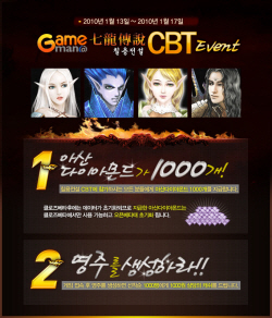 이번 CBT는 IMI의 게임포털인 ‘게임매니아(http://www.gamemania.co.kr)’ 회원을 대상으로 진행되며, 참가 희망자는 게임매니아에 접속하여 칠용전설 플레이를 선택하면 별도 제한 없이 곧바로 CBT를 즐길 수 있다. IMI는 CBT 개시를 기념해 다양한 축하 이벤트를 진행할 예정이다.