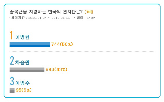 영화 <시크릿>에서 형사로 변신하여 남성적인 매력을 선보인 배우 차승원과 <홍길동의 후예>에서 멋진 액션을 선보인 이범수 등이 후보에 오른 이번 설문조사는 과반수인 50%의 네티즌들이 꿀복근을 자랑하는 명품몸매의 소유자로 이병헌을 선정했다.
