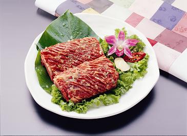 | ▲ 신선한 한우와 야채, 과일 등으로 만든 소스가 곁들여진 하누소의 양념왕갈비 | ||