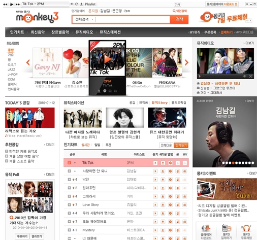 한편 12일 현재 실시간차트에서는 티아라, 씨야, 다비치의 ‘원더우먼’, 김남길의 ‘사랑하면 안되니’, 가인과 조권의 ‘우리 사랑하게 됐어요’가 열띤 순위 다툼을 하고 있다. 이는 몽키3(www.monkey3.co.kr)를 통해 확인 할 수 있다.