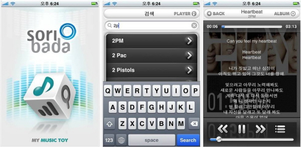 소리바다 아이폰 어플리케이션은 혁신적인 사용자 환경으로 기존 아이튠즈나 웹 사이트를 통해 음악을 내려 받고 다시 단말기로 옮겨야 했던 불편함 없이 한두 번의 터치만으로 손쉽게 음악을 즐길 수 있다.