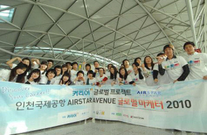 21일 인천공항 면세점 ‘에어스타 애비뉴’ 프로모션 일환으로 취업포털 커리어와 공동 주최한 ‘글로벌 마케터 2010’에 뽑힌 국내 대학생 27명이 참석한 가운데 인천공항 여객터미널 2층 CIP비즈니스센터에서 발대식이 열렸다.