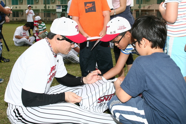 올해 국내프로야구단 최초로 기획한 LG트윈스 어린이 영어캠프 참가자들은 선수단과의 만남에서 반가운 얼굴들을 보며 사인을 받기 위해 달려갔지만 봉중근 선수에게만은 쉽게 사인을 받지 못했다.