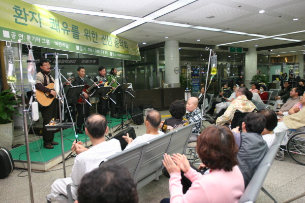 이대목동병원이 신년을 맞아 아마추어 통기타 그룹 '파란하늘'을 초청해 개최한 이번 음악회에서는 입원생활에 지친 환자와 보호자들이 평소 듣기 어려운 통기타와 하모니카, 1970~1980년도에 즐겨 듣고 부르던 익숙한 포크 송을 들으며 뜨거운 반응을 보였다.