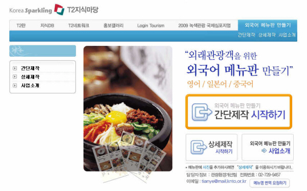 이 사이트는 사용자들이 각 음식점의 환경과 기호에 맞춰 외국어 메뉴판을 직접 제작, 즉석에서 사용할 수 있는 수준으로 구축되었으며 1700여개의 음식메뉴가 영어, 일어, 중국어 간/번체 표기 자료로 지원된다.