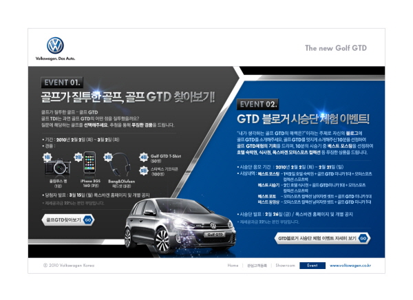 | [사진=폭스바겐이 골프GTD출시 기념으로 다양한 온라인 이벤트를 마이크로사이트를 통해 실시한다] | ||