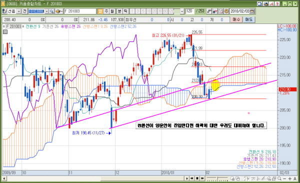 “ 선물210.40지지여부중요 지지 시 강력한 매수대응.”
