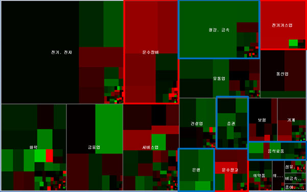 업종별로는 전기가스(+3.74%), 운수장비(+2.50%), 운수창고(+1.88%)로 상승폭이 컸으며, 은행(-1.98%), 철강금속(-1.55%), 음식료(-1.15%), 증권(-1.02%) 순으로 하락폭이 컸습니다.