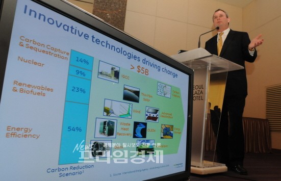 | <사진= 스티브 플러더 GE 부사장은 친환경 녹색경제 정책의 중요성을 강조했다> | ||