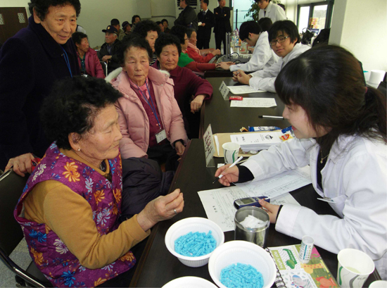 무료의료봉사를 위해 땀 흘렸던 경희대 연합의료봉사단 녹수회(대표 이재현)는 교수 1명과 한의대·간호대 학생 등 50여명으로 구성돼 있어 의료지원 서비스가 부족한 농어촌지역 주민들로부터 호평을 받았다.