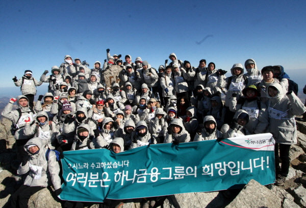 [프라임경제] 하나금융그룹은 2009년 하반기 입사한 신입사원 71명을 대상으로 설악산 대청봉 등반행사를 개최했다고 밝혔다.