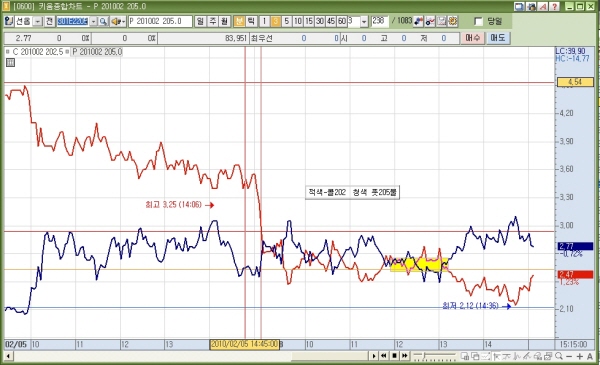 그림3(옵션 콜202 풋205 교차차트)