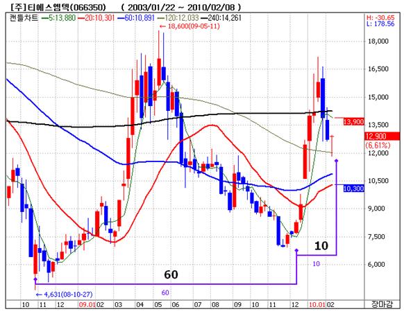<티에스엠텍 주봉차트> |