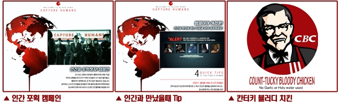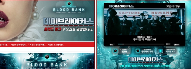 또한, 카페와 함께 개설된 <데이브레이커스>의 공식 홈페이지에서는 아직 살아있는 인간들이 주렁주렁 매달려 피를 생산하고 있는 블러드뱅크의 충격적인 내부 모습을 볼 수 있으며 온라인상에서 이미 화제가 된 바 있는 강력한 비주얼의 영화 예고편도 감상할 수 있다.
