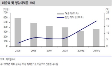 | <제이엠아이 매출액 및 영업이익률 추이/ 자료제공 : 신한금융투자> |