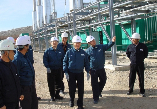 <사진설명 = 현대중공업 민계식 부회장과 그 일행이 지난해 설 연휴 이라크를 방문해 디젤발전설비 건설현장을 점검, 직원들을 격려하고 있다> |