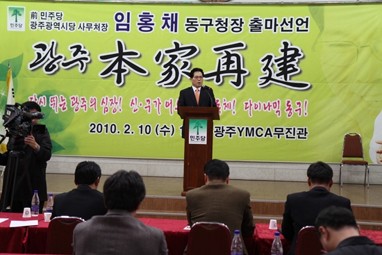 | 임홍채 전 민주당 사무처장이 10일 광주 동구청장 출마를 선언했다. |