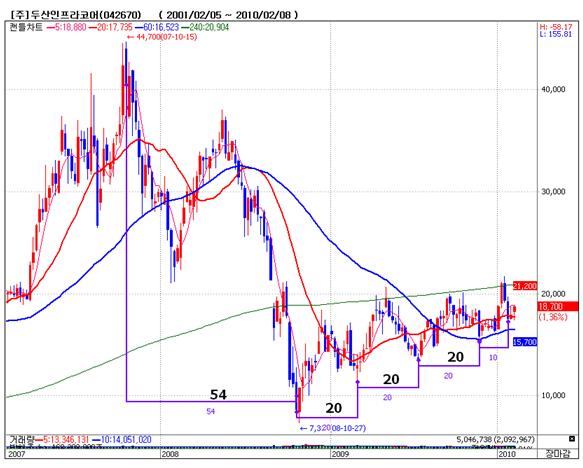 <두산인프라코어 주봉차트> |