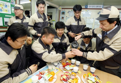 11일 GM대우에 따르면 설 연휴를 앞둔 지난 9일 저녁 7시경, 아카몬 사장과 GM대우 추영호 노조지부장은 토스카와 윈스톰을 생산하는 부평 조립2공장을 방문해 야간 작업공정 하나하나를 자세히 살피며 현장 임직원들에게 생산 품질 향상을 위해 노력해 줄 것을 당부했다.