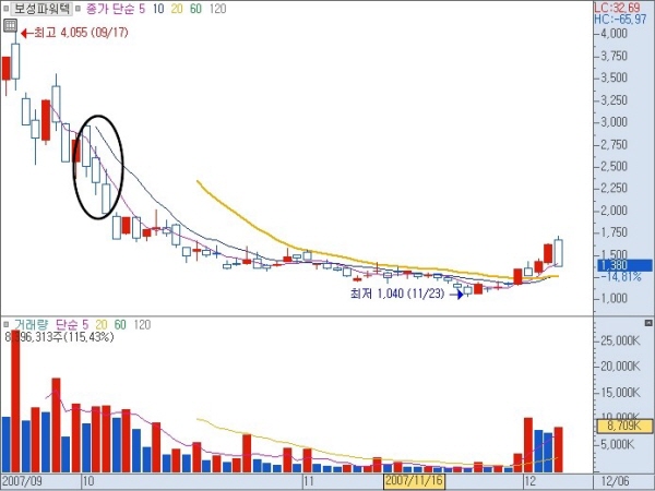 차트 공부를 할 때 맨 처음 배우는 것 중에 하나가 흑삼병이 탄생하면 매도하라는 것입니다. 흑삼병이란 음봉이 연속으로 3개가 나오는 것으로 하락음봉이 연속으로 3개가 나오면 추세적인 하락으로 보고 매도를 하는 것이 정석이라는 것입니다.