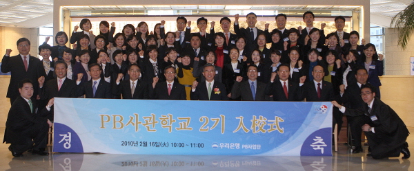 <사진=우리은행은 16일 회현동 본점에서 PB사관학교 제2기 입교식을 가졌다. 이번 과정에는 우리금융 계열사인 경남은행과 광주은행도 참여했다.> |