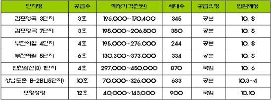 비수도권에서는 포항장량(국임, 900가구)서 총12개 점포가 22~23일 입찰되며 예정가격 총액은 9억3800만원이다.