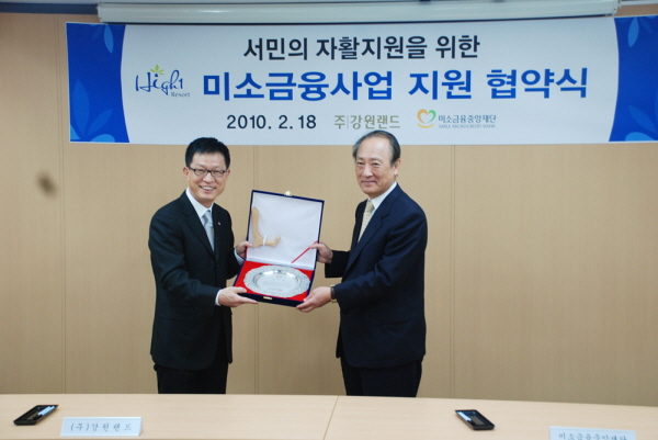 한편, 미소금융중앙재단 회의실에서 진행된 이날 행사는 김승유 미소금융중앙재단 김승유 이사장과 강원랜드 최영 대표가 참석했다.