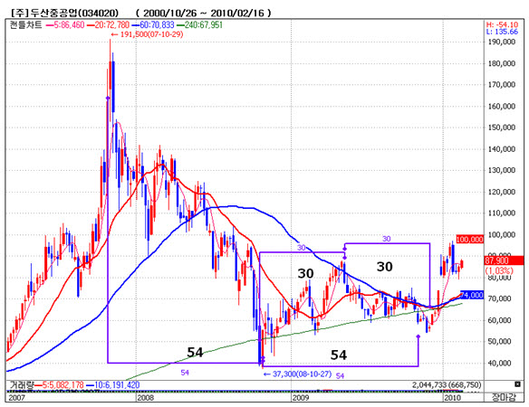 기술적 분석으로 본다면, 54주 가격조정과 54주 시간조정을 거친 이후 재상승 흐름을 보이는 첫번째 눌림목 발생이라고 분석했다.