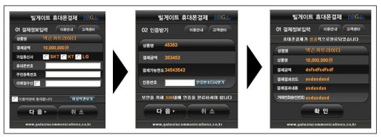 갤럭시아커뮤니케이션즈가 선보인 스마트폰 전용 전자결제서비스는 기존 PC환경에서만 가능했던 전자결제서비스를 스마트폰에서도 사용 할 수 있도록 최적화 한 것으로 기존 서비스 보다 유저의 편의성을 높인 것이 장점.
