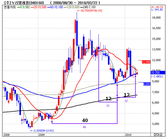 누리텔레콤 주봉차트 |