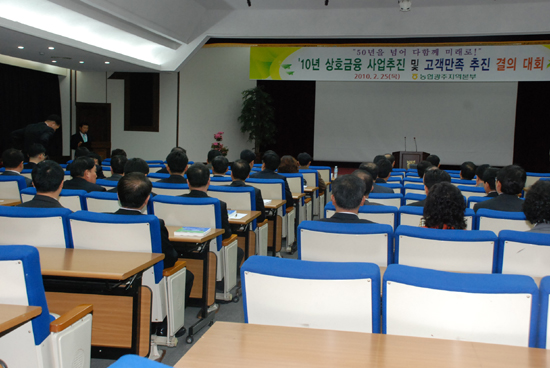 광주본부 관계자는 "이번 교육을 통해 2010년 상호금융 사업추진 목표 및 추진방향을 공유하였고, 상호금융사업 조기착수로 사업목표의 무난한 달성이 기대된다"고 말했다.