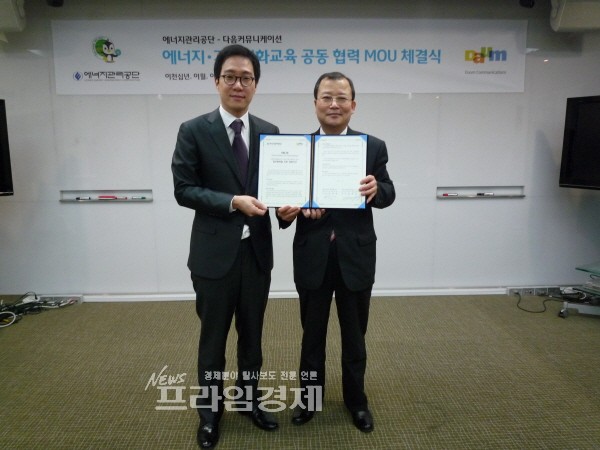 [프라임경제]에너지관리공단 국자중 본부장(오른쪽)과 다음커뮤니케이션 신종섭 본부장이 25일 서울 한남동 다음커뮤니케이션에서 어린이·청소년의 에너지절약 활동 온라인 활성화를 위한 업무협약을 체결했다.