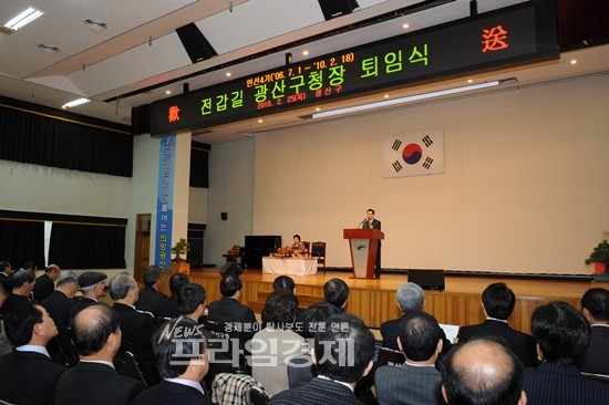 | 전갑길 광주시장 예비후보는 25일 광산구청에서 민선4기 광산구청장 퇴임식을 가졌다. | ||