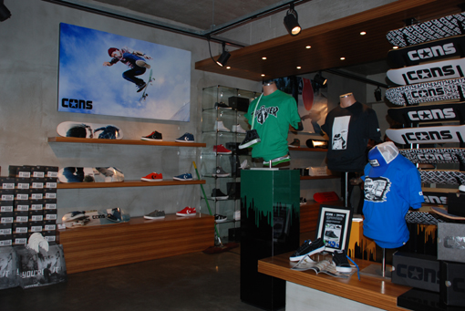 또한 글로벌 CONS Team의 스케이드 보딩 영상과 사진도 전시되어 스케이드 보드 매니아 뿐 아니라 일반 고객들도 'CONS'에 대해 친근하게 접할 수 있었으며 프로 스케이트 보더 들이 멋지고 화려한 스케이트 보딩을 선보이기도 했다.