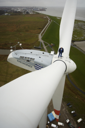 <사진설명= 독일 니더작센 주의 쿡스하펜(Cuxhaven) 지역에 설치된 드윈드사의 2MW급 풍력발전기 D 8.2> |