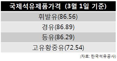 실제 고황유의 국제가격차이는 다른 품목에 비해 훨씬 저렴했다. 1일 현재 국제석유제품 현황을 살펴보면 고황유는 72.54달러로 휘발유(86.56달러), 경유(86.89달러), 등유(86.29달러)에 비해 싼 것으로 나타났다.