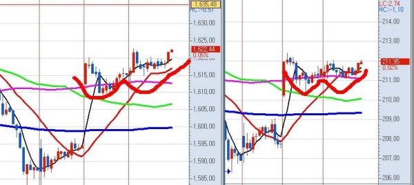 다음저항선으로 코스피1630과 선물 214.25, 그리고 지지선으로 210 그리고 단기저항선이 있는 212.20 이 앞으로 남은 이번주간의 중요수치이므로 주의 깊게 살펴봐야 할 것이다.