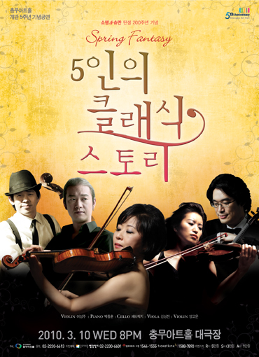 충무아트홀은 개관 5주년을 기념하여 펼쳐지는 이번 공연은 <5인의 클래식 스토리>라는 제목으로 선보인다. 3월 10일 충무아트홀 대극장 (02)2230-6601