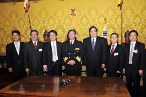 <지난 6일 에콰도르 대통령 궁에서 진행된 계약식기념 촬영/ SK건설> |