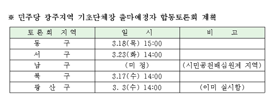 시당은 이번 기초단체장 출마예정자 토론회에 이어서 광주 광역단체장 출마예정자 토론회도 3월말 이후 진행한다는 계획이다.