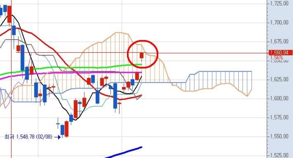 기본적인 전략은 상승이나 오늘 상승에 대한 대규모 이익실현 물량 때문에 다시 상승으로 전략을 잡기에는 좀 부담스러운 면이 있으나, 이미 이번 주 고점을 1660선으로 잡은 입장에서 추세를 탓기 때문에 다음의 저항점을 218.20으로 제시하며 하락 시 지지선을 216.70으로 설정하겠다. 8일 하루 갭으로 너무 오른면이 있으므로 9일 장은 그 지지세력을 확인하는 전략으로 가는 것이 방향성 탐색에 좋을 듯 하다.