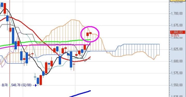 9일 코스피지수는 장초반 고점인 1661.26을 찍고 계속 횡보세를 보여며 지루한 증시를 이틀째 이어가다 결국 강보합권인 1660을 안착하며 끝났다. 217.50을 사이에 두고 세력간의 공방이 치열한 하루였다. 대부분의 투자자들이 대응을 하지 못하고 하루 종일 구경만 한 날로 보여진다. 한 때는 대외경제변수의 불안한 움직임 때문에 밑방향으로 베팅할 법한 자리도 있었지만 포지션 구축이 너무 강해 절대 움직이지 않는 모습으로 마감하였다.